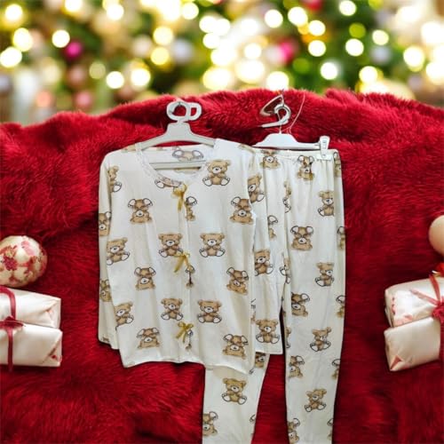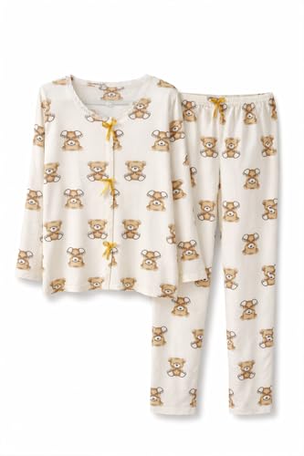 Generic - بيجامة حريمي قطعتين بطبعة دبدوب – خامة قطن ناعمة – مريحة للنوم والبيت