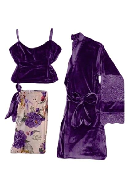 Generic - بيجامة قطيفة 3قطع للنساء فري سايز