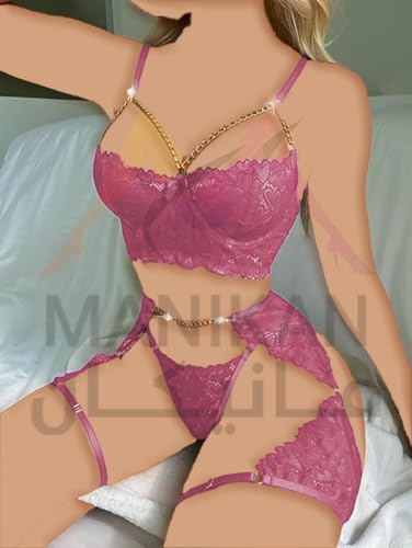 Generic - طقم ملابس داخلية للنساء مكون من 4 قطع من حمالة صدر وسراويل داخلية من الدانتيل مع رباط ضيق