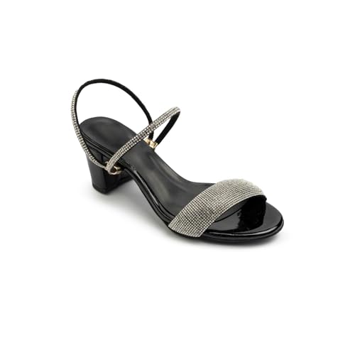 Generic - صندل بكعب 5 سم للنساء بسيور اللماظ للمناسبات والسهرات