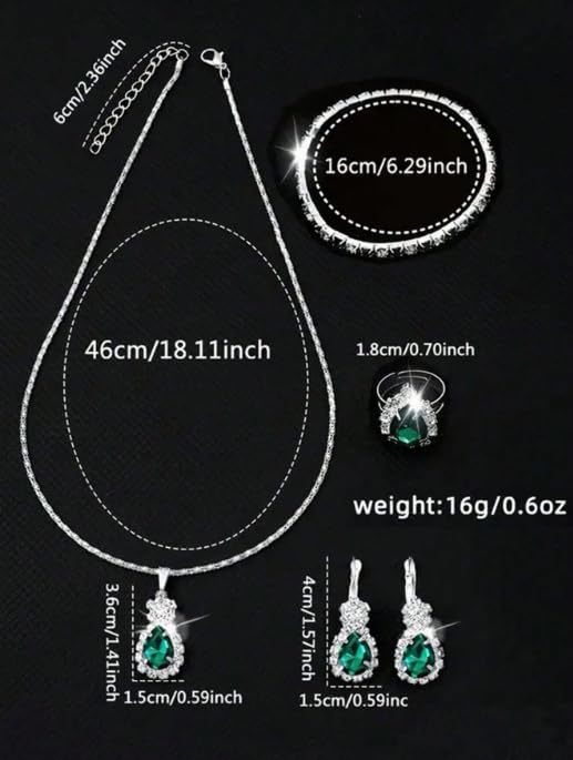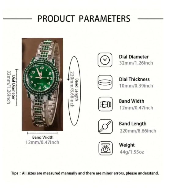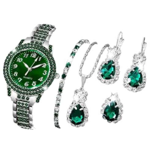 Generic - طقم إكسسوارات حريمي 5 قطع – ساعة وسلسلة وسوار وحلق وخاتم بلون أخضر زمردي لامع