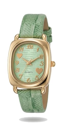 Generic - ساعة انالوج جلدية للنساء - ساعة انيقة بتصميم كلاسيكي - سوار جلدي مريح - انيقة ومتينة (اخضر فاتح)