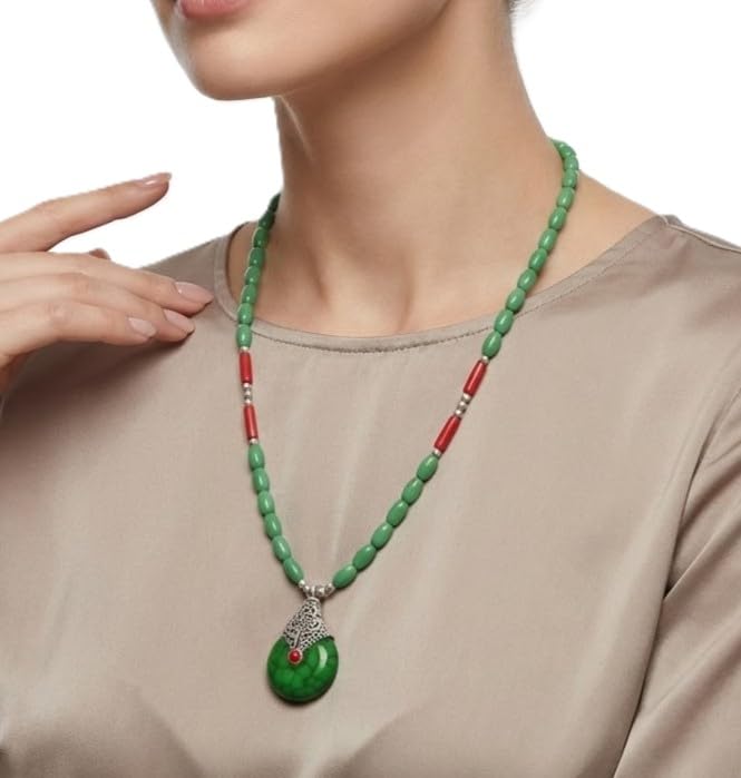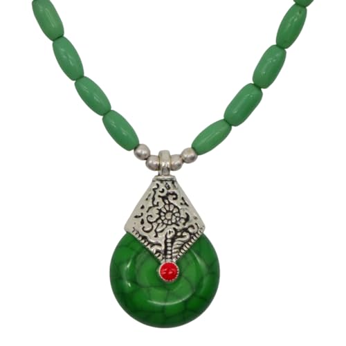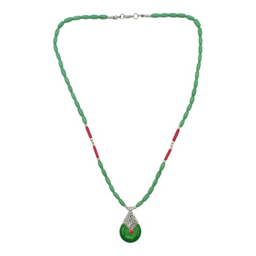 Indian Stones MA - عقد هندي قديم حريمي فاخر من الفضة المخلوطة بالنحاس اقل من العيار مرصع بأحجار طبيعية كريمة من الفيروز ولابس لازولي والمرجان - متعدد الالوان