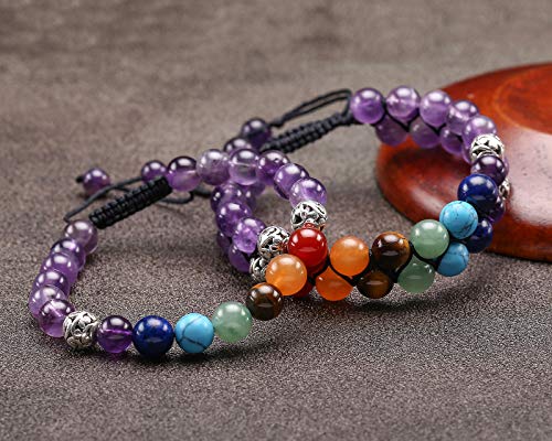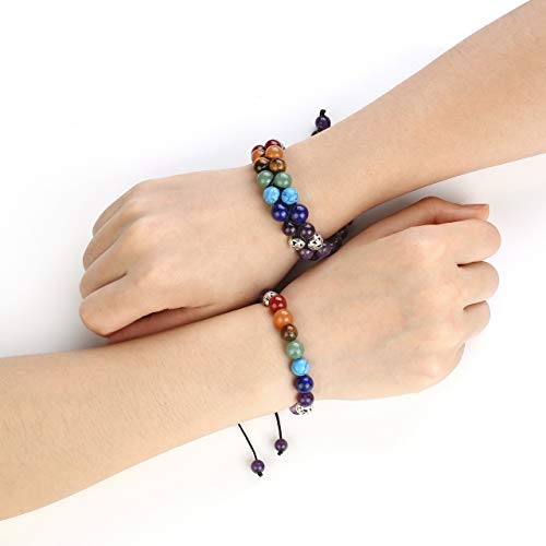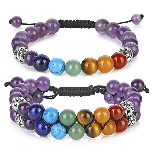 generic - اساور خرز مرنة قابلة للتعديل للنساء (7 شاكرا اينيرجي، قطعتان)