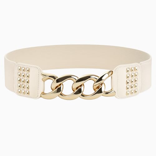 Generic - حزام خصر مطاطي بيج مع ابزيم كلاسيكي للنساء - حزام عريض قابل للتمدد للفساتين والمعاطف والبدلات - مشبك بيج 5 سم