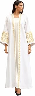 Generic - Women's Black and White Embroidered Kaftan Luxury Gold Embroidery One Size White and Black Embroidered Kaftan Elegant Design