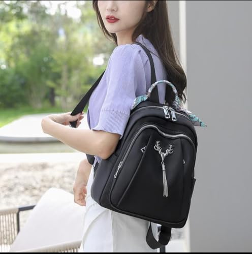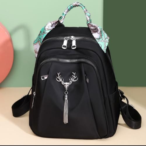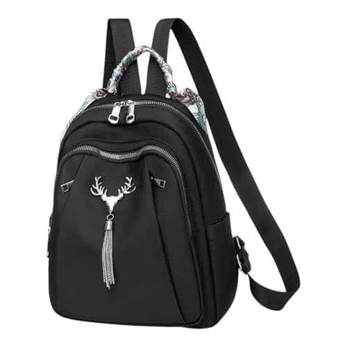 Generic - حقيبة ظهر سوداء نسائية مع زخرفة غزال فضية وشراشيب، متعددة الجيوب