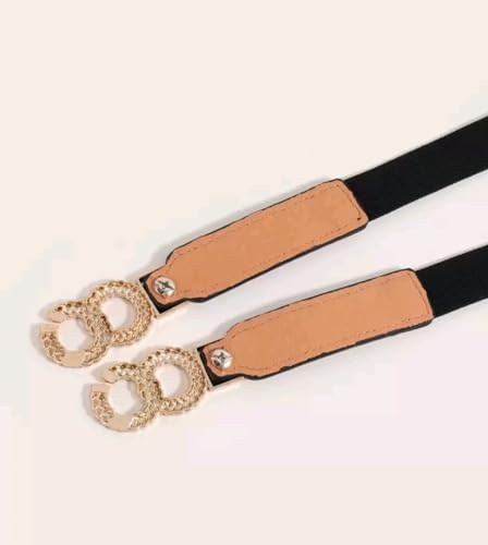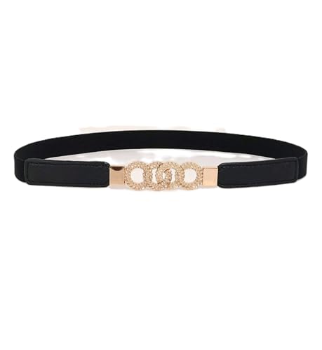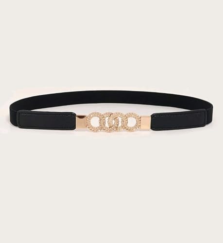 Generic - حزام نسائى أسود مطاطي بمشبك معدني ذهبي بسيط ومرن رفيع للخصر لفستان