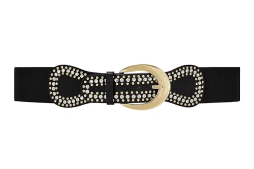 Generic - حزام خصر مطاطي اسود للنساء مع ابزيم كلاسيكي وازرار - حزام عريض قابل للتمدد للفساتين والمعاطف والبدلات