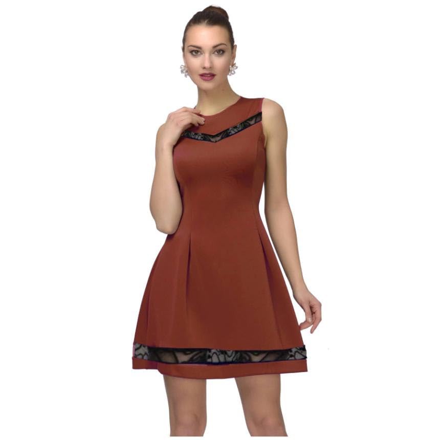 Generic - فستان نسائى دون اكمام مزين بدانتيل اسود