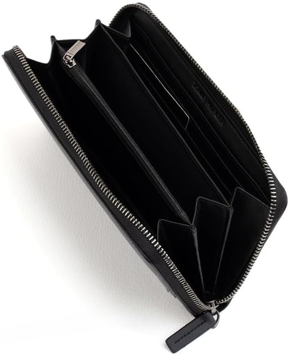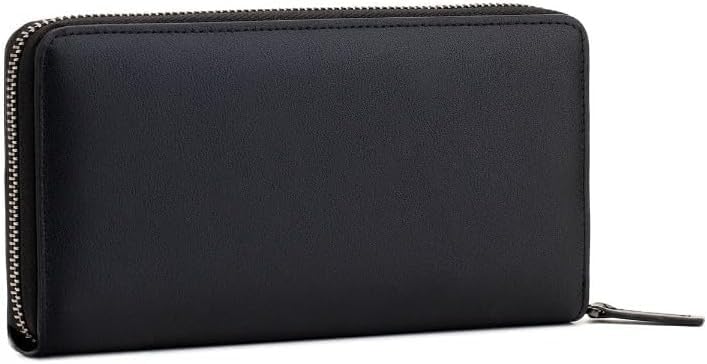 Generic - محفظة طويلة من الجلد الاسود للنساء - شنطة يد صغيرة رفيعة انيقة مع فتحات متعددة للبطاقات وجيب للعملات المعدنية وشعار مميز - منظم جلد فاخر للاستخدام اليومي