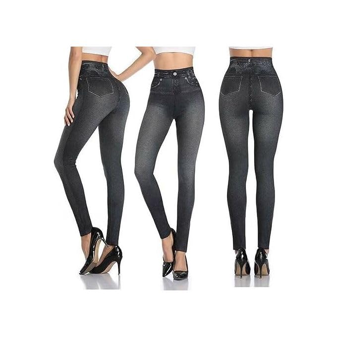 Generic - ليجنز نسائي بطبعة جينز، أسود، بتصميم ضيق ومرن، مناسب للارتداء اليومي