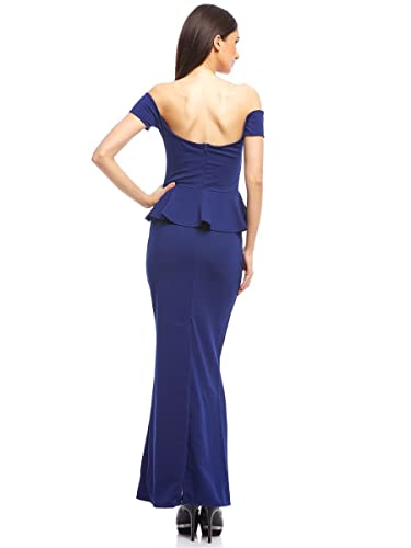 Generic - فستان نسائى أزرق طويل بقصة مروحة من الوسط