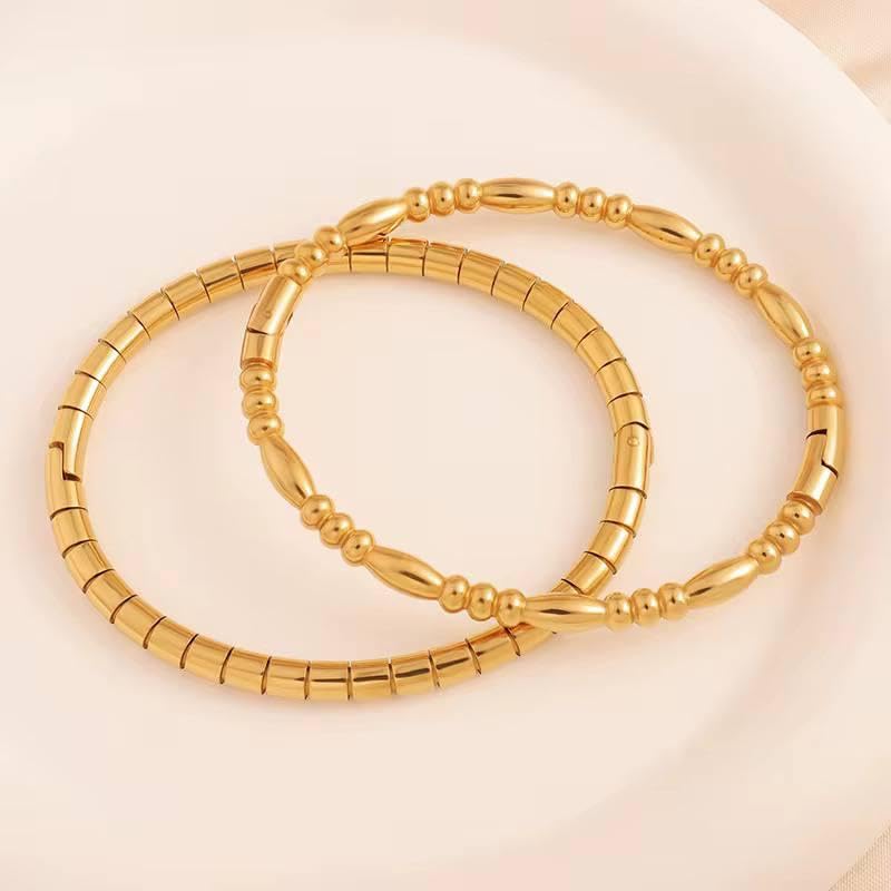 Generic - اساور حريمي مكونه من قطعتين أنيقة من ستانلس ستيل بجودة عالية وتصميم عصري
