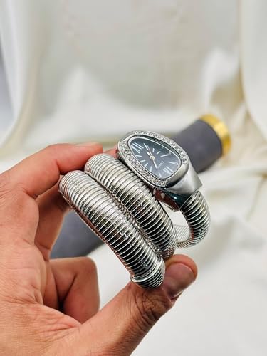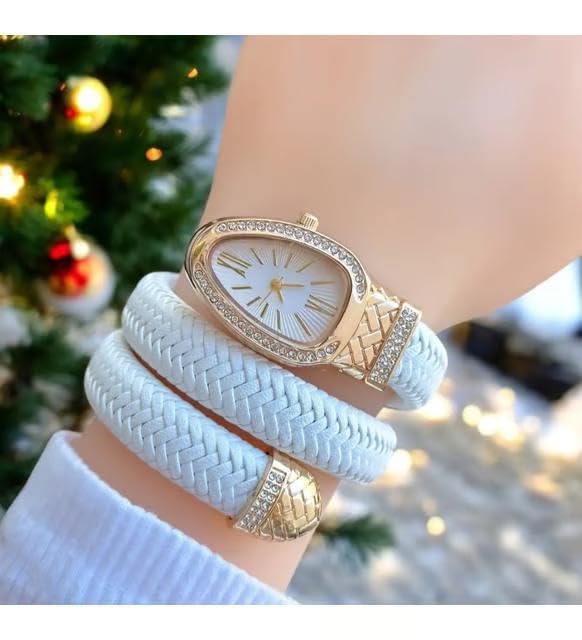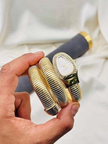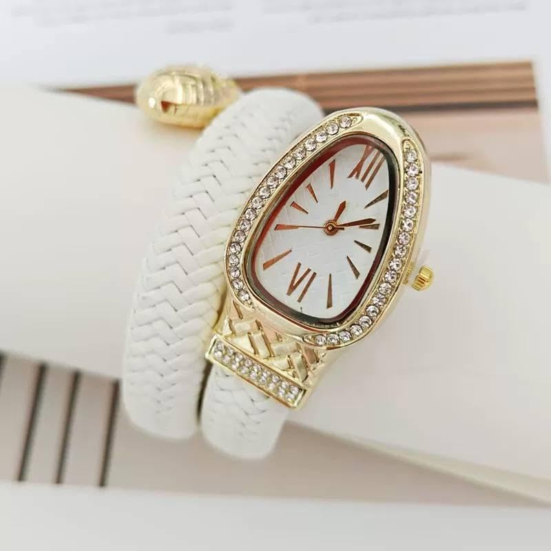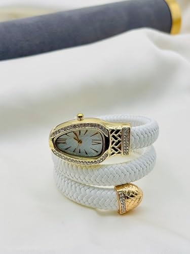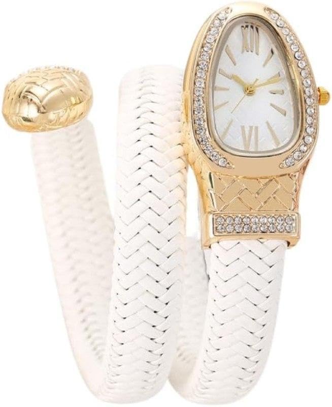 Generic - ساعة جلد مضفرة للنساء - تصميم انيق ملفوف على شكل ثعبان بالوان متعددة واطار مرصع بالكريستال مطلي بالذهب، حركة كوارتز لرقي لا يتأثر بمرور الزمن