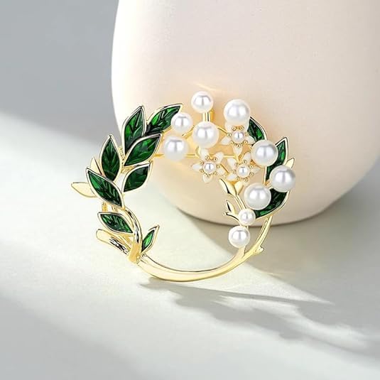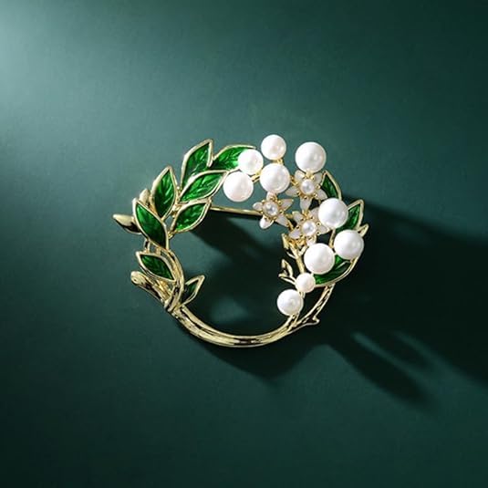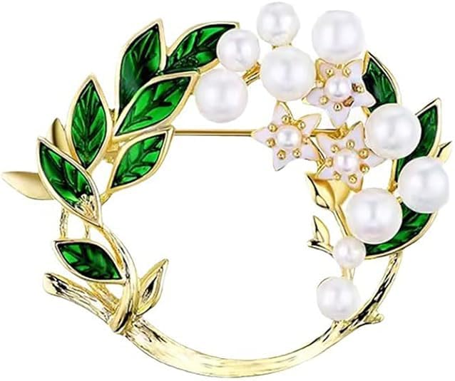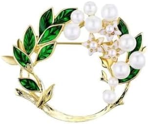 Parlberd - دبابيس بروش عصرية مصنوعة من الكريستال للنساء، مجوهرات لؤلؤ وحجر الراين الكريستالي، هدية للام والزوجة والزفاف وباقة الزفاف والحفلات اليومية (ورقة خضراء)، 1، ستانلس ستيل