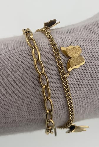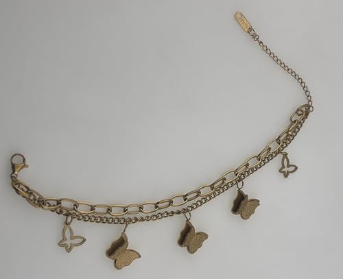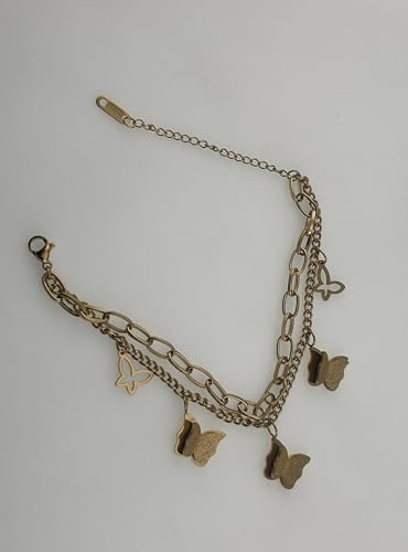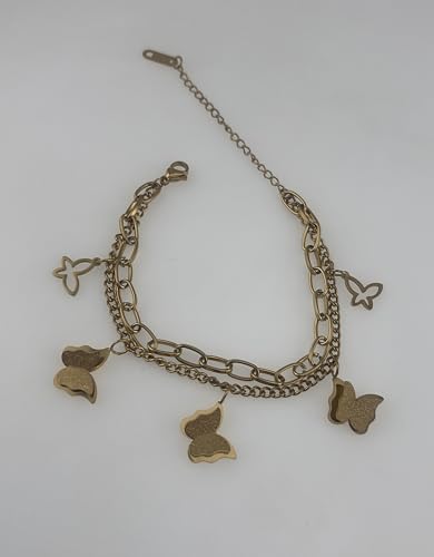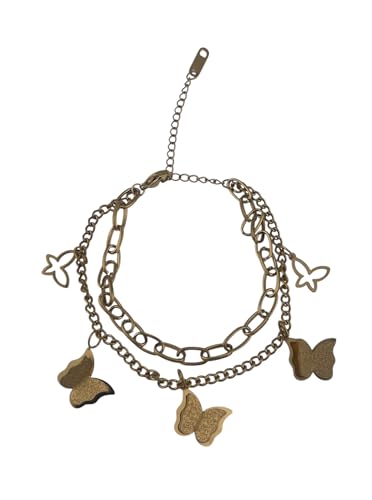 Generic - سوار على شكل فراشة للنساء - تصميم سلسلة مزدوجة بلون ذهبي