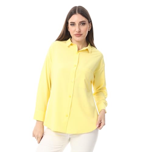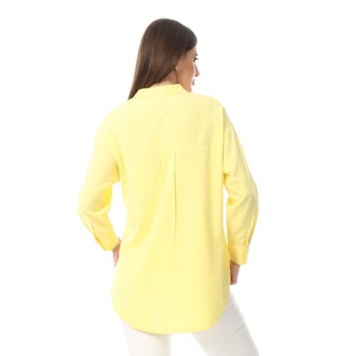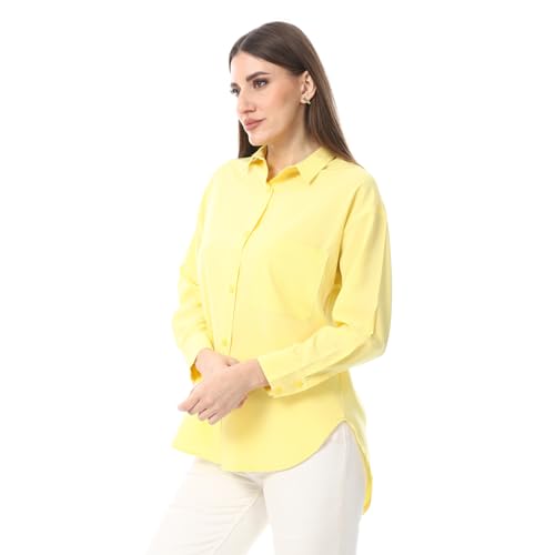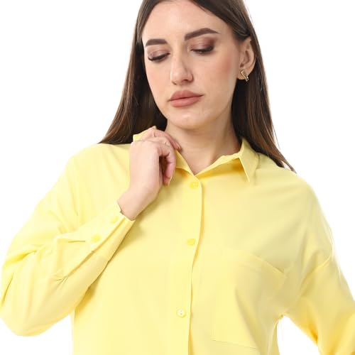 Generic - قميص بازرار واكمام منفوخة للنساء، مصنوع من القطن بنسبة 100% (اصفر، مقاس M)