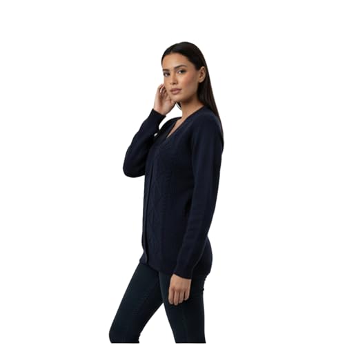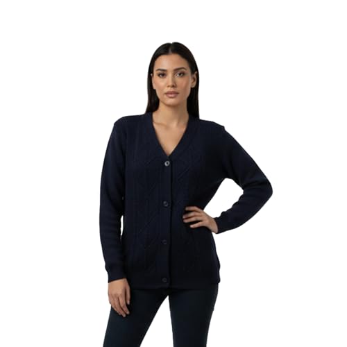 CAESAR - سيزر - كارديجان من قماش مضفر منسوج للنساء، لون كحلي، مقاس واحد