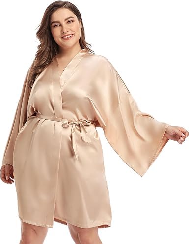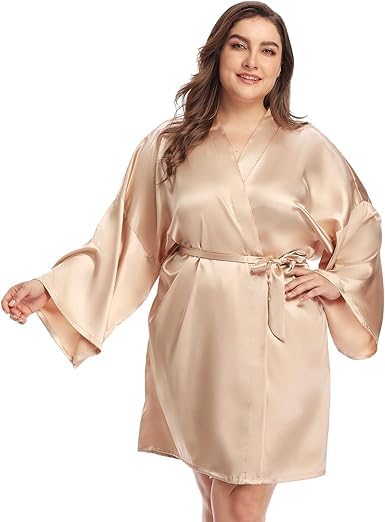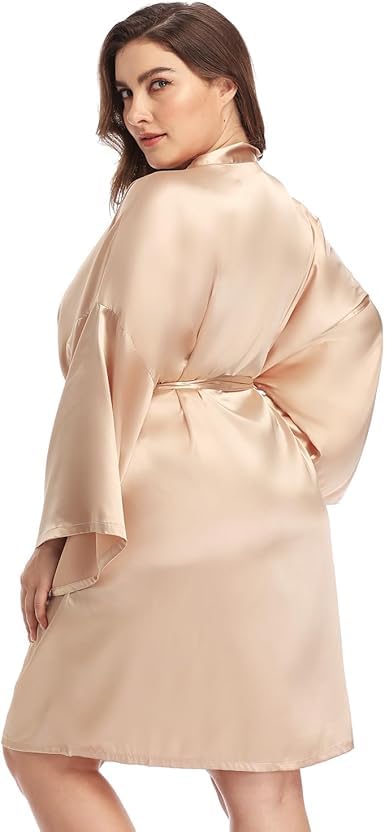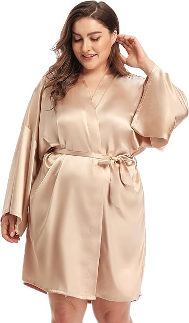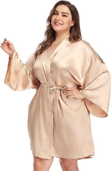Generic - روب لانجري ساتان باكمام واسعة للنساء اللون الكافيه مقاس خاص من 90 :130 كيلوجرام