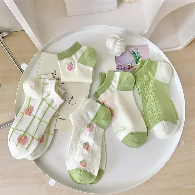 مجموعة شرابات كاجوال للنساء بطول الكاحل مريحة للقدمين 5 أزواج + 1 هدية ، 6 ازواج ، مقاس (37-42)