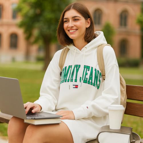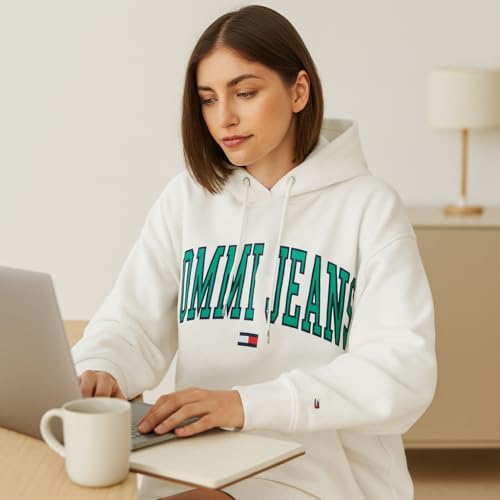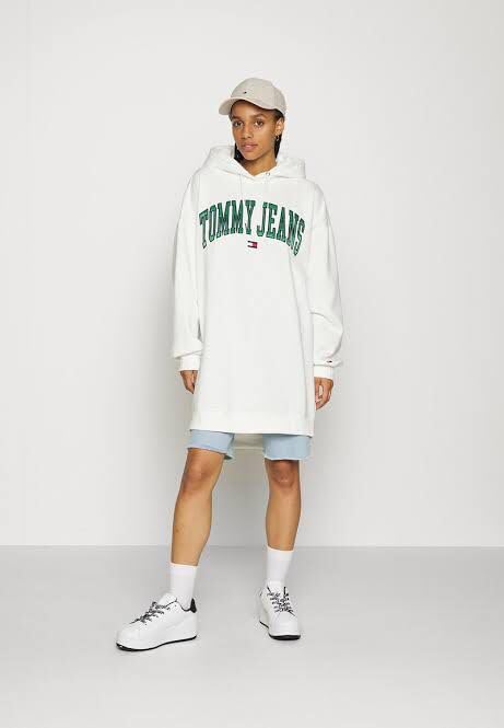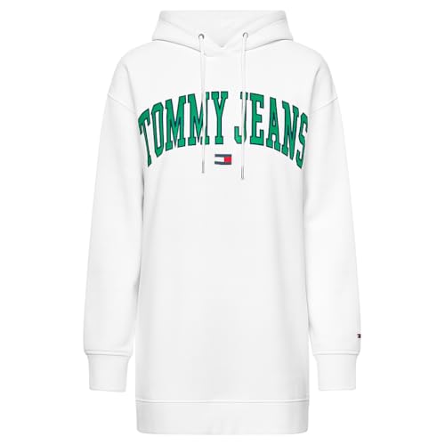 Generic - فستان سويت شيرت كاجوال كبير الحجم بغطاء رأس للنساء، فستان بلوفر بغطاء للرأس وأكمام طويلة - لون أبيض، مقاس سمول S