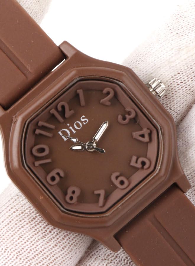 Generic - ساعه يد كاجوال حريمي - انالوج- كوارتز- باند سيليكون بني- مينا بني, DI07