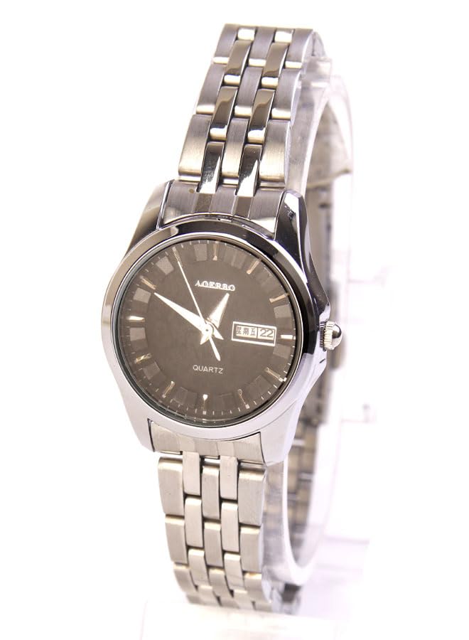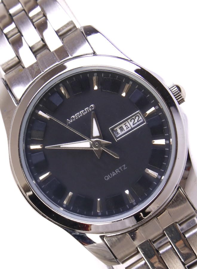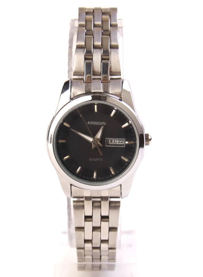 Generic - ساعه يد كاجوال حريمي - انالوج- كوارتز- باند ستانلس ستيل فضي - مينا سوداء BO04