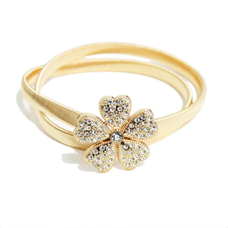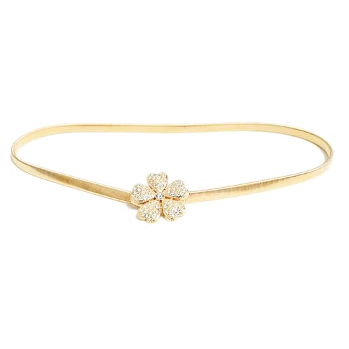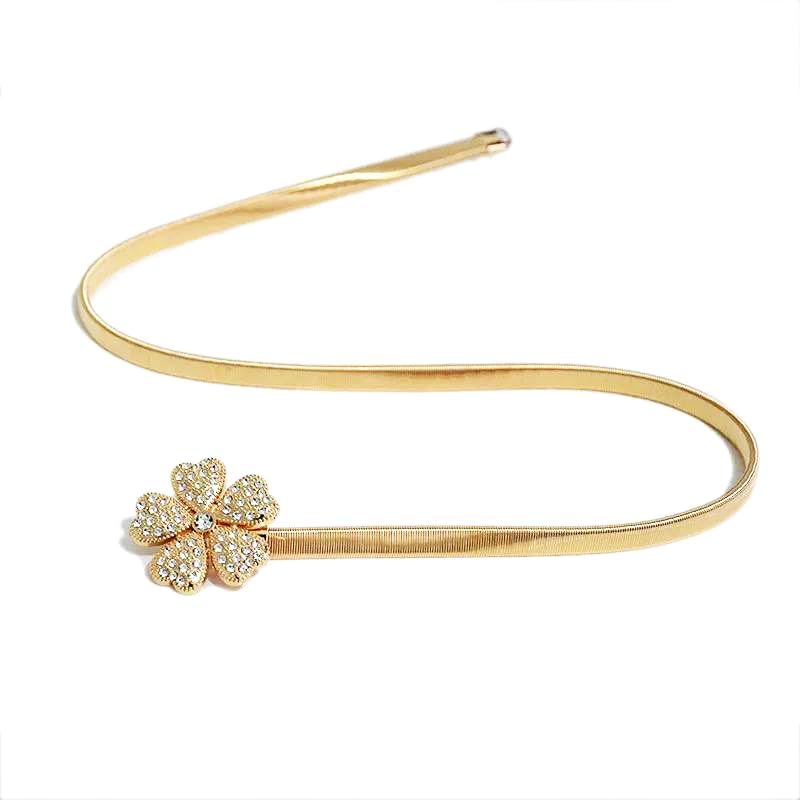 Generic - حزام سلسلة نسائي - معدن مطلي بلون الذهب مع أبزيم وردة مرصع بالاحجار الصغيرة,1 قطعة