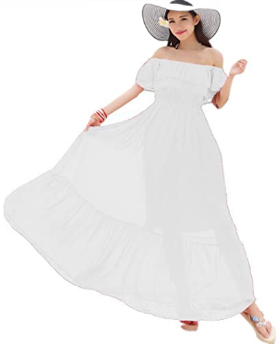 Generic - فستان نسائى شيفون دون اكمام بمروحة من الصدر لون ابيض
