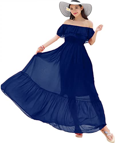 Generic - فستان نسائى شيفون دون اكمام بمروحة من الصدر لون كحلي
