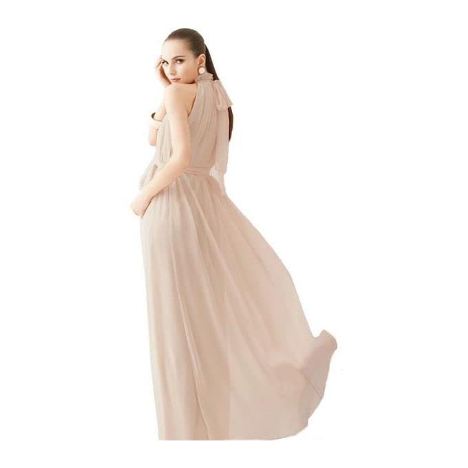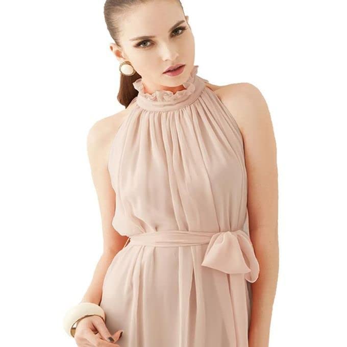 Generic - فستان نسائى طويل شيفون دون اكمام لون بيج