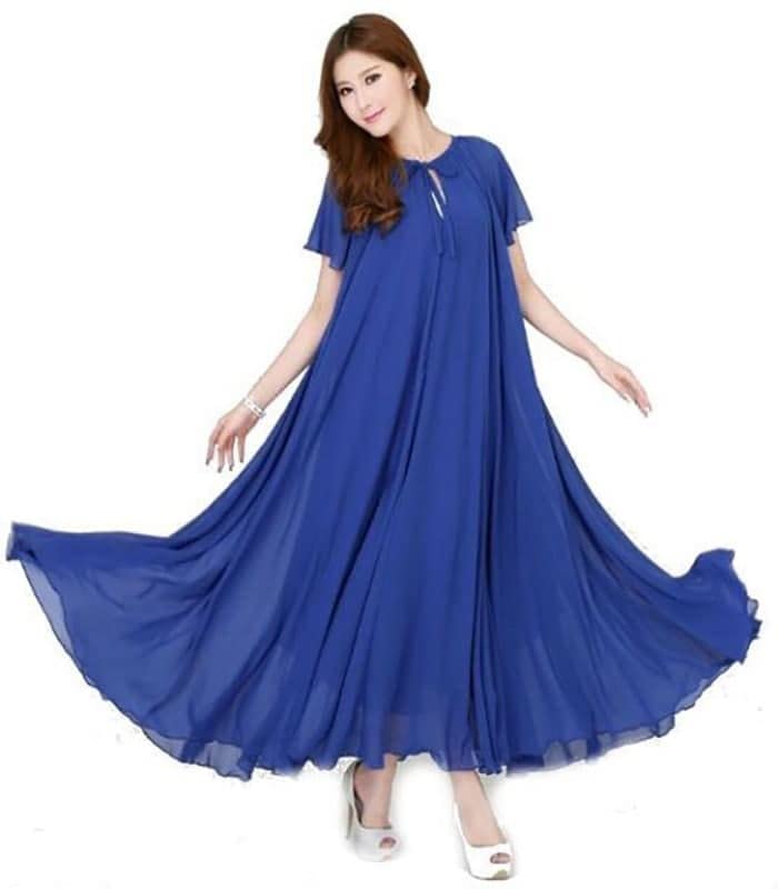 Generic - فستان شيفون نسائي ماكسي بأكمام قصيرة مع بطانة، أزرق