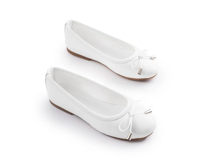 Katee - حذاء باليه فلات كلاسيك مريح سهل الارتداء مزين بفيونكة للنساء من الجلد الأبيض (لون أبيض، مقاس 30)