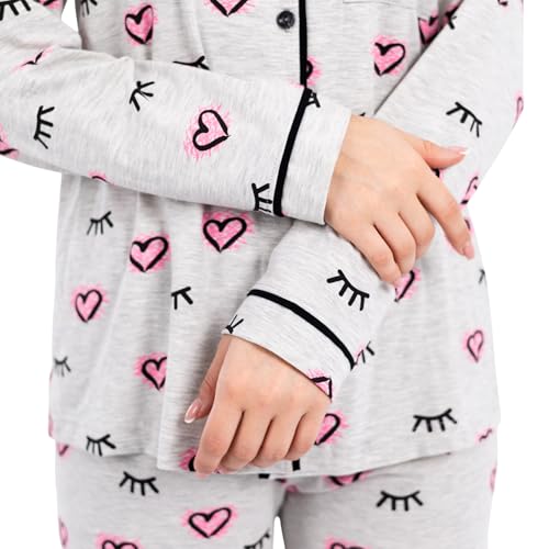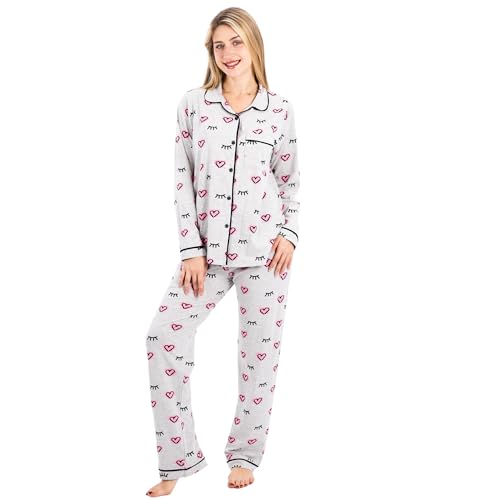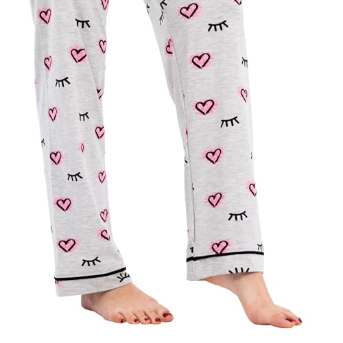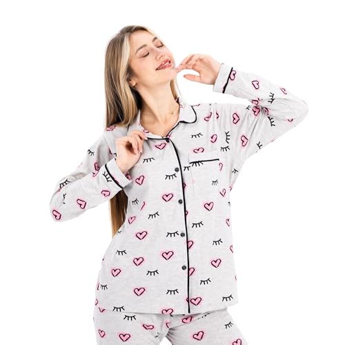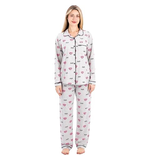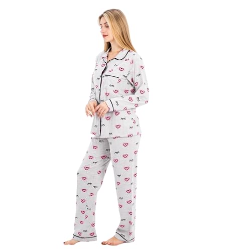 ZECOTEX - طقم بيجامة قطن كلاسيك للنساء مكون من بلوزة نصف كم وبنطلون، ملابس نوم صيفية خفيفة الوزن من قطعتين بطباعة قلب