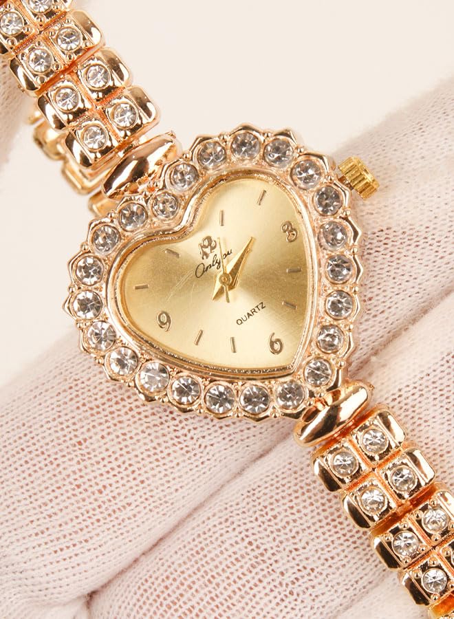 Generic - ساعة يد كلاسيك حريمي- انالوج - كوارتز- باند استانلس ستيل ذهبي - مينا ذهبي - ON16