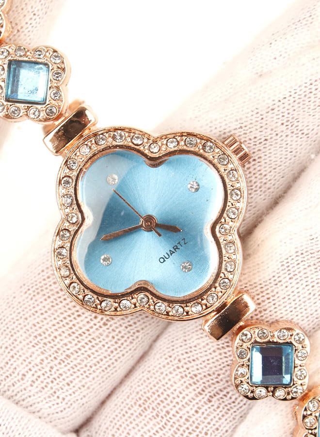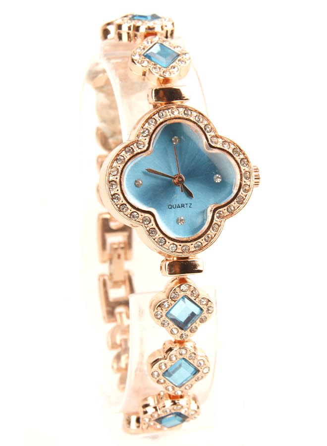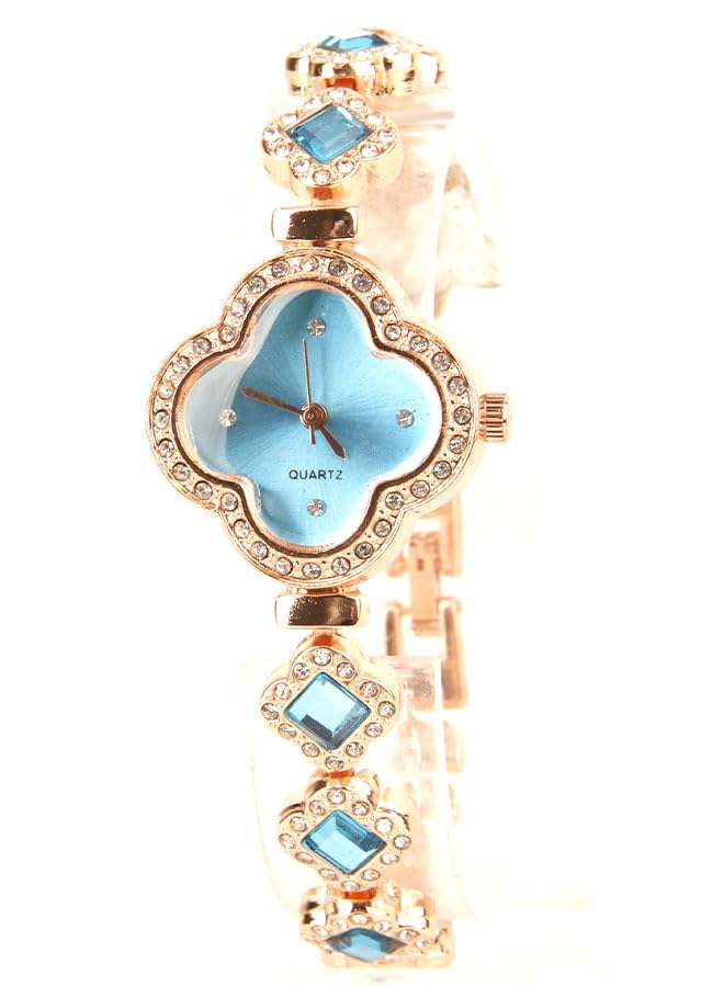 Generic - ساعة يد كلاسيك حريمي- انالوج - كوارتز- باند استانلس ستيل روز جولد - مينا ازرق فاتح - ONLY21