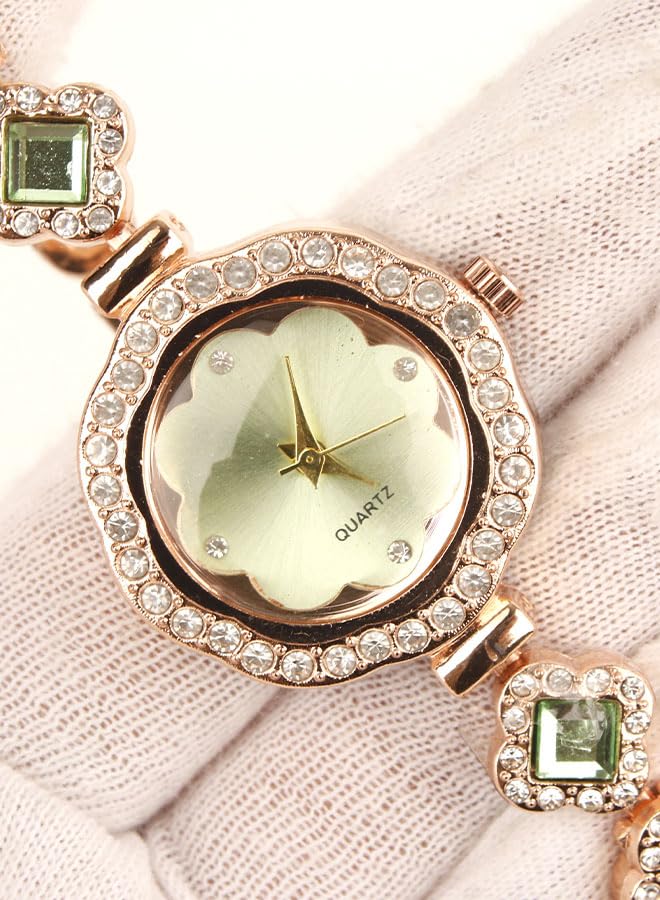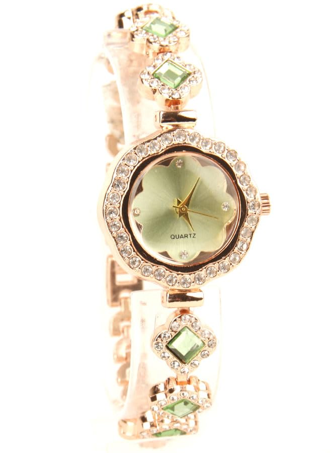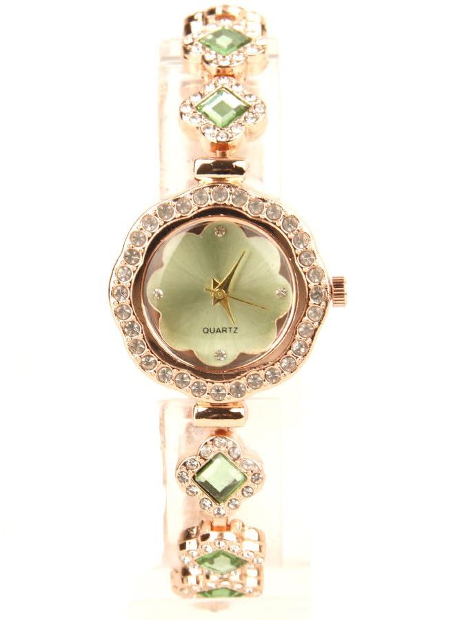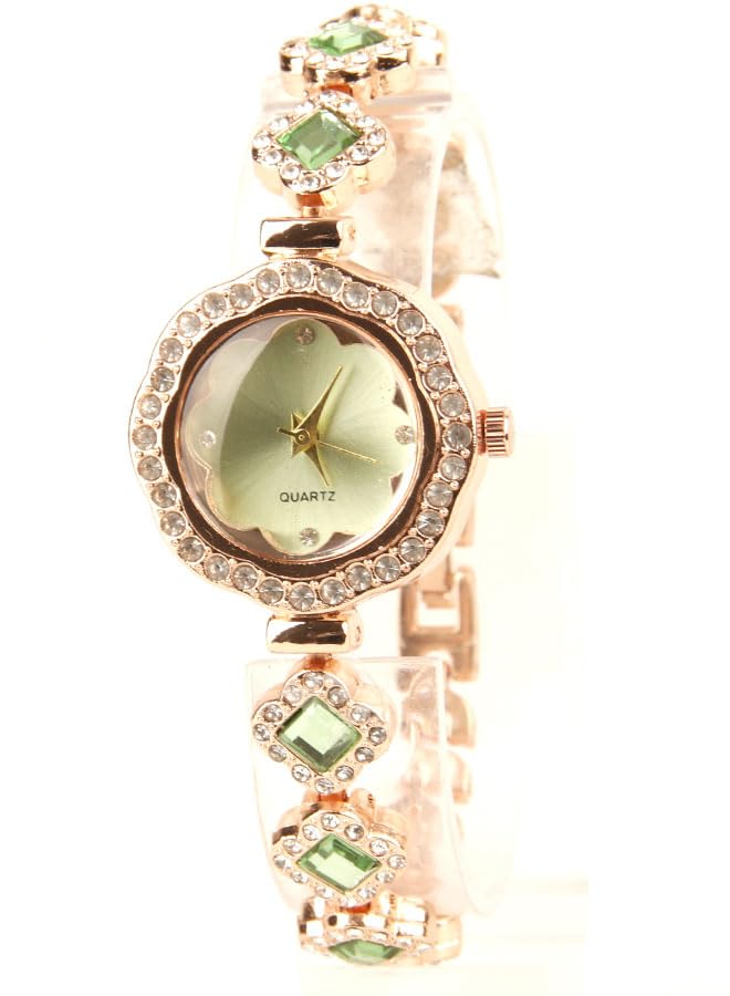 Generic - ساعة يد كلاسيك حريمي- انالوج - كوارتز- باند استانلس ستيل روز جولد - مينا اخضر نعناعي- ONLY23