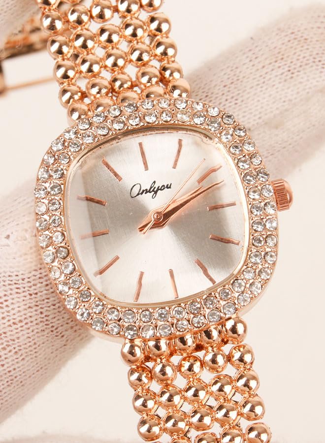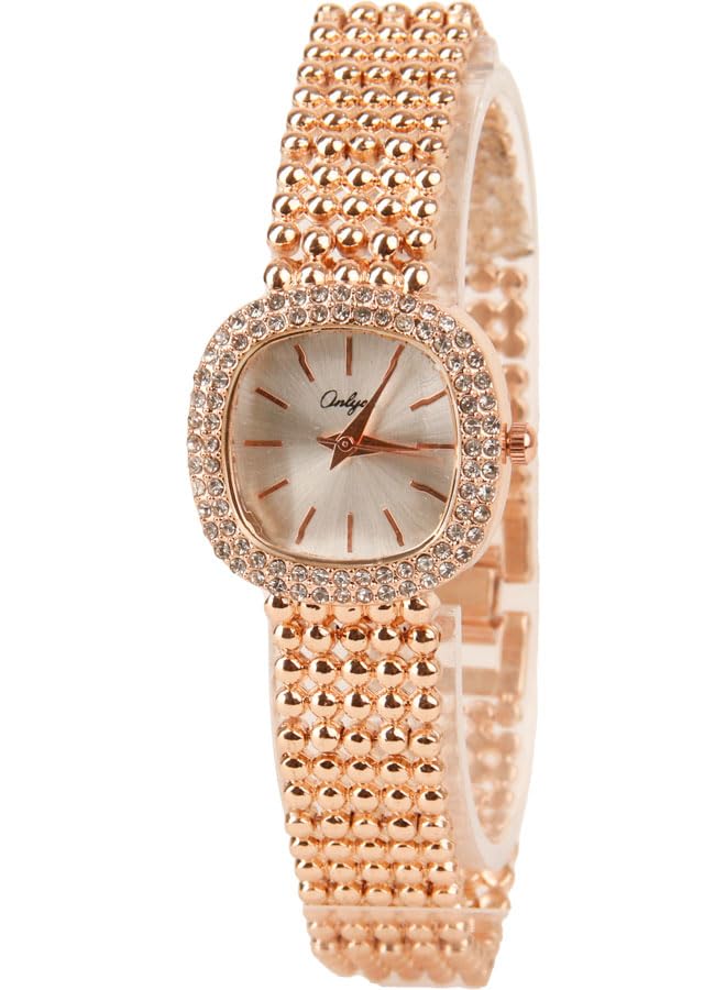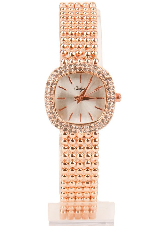 Generic - ساعة يد كلاسيك حريمي- انالوج - كوارتز- باند استانلس ستيل روز جولد - مينا فضي- ONLY15