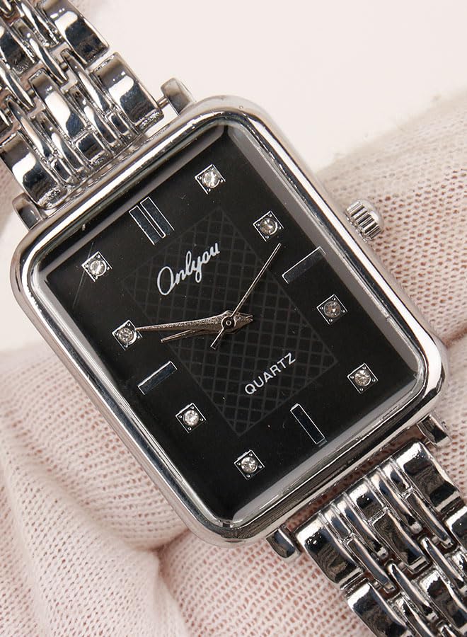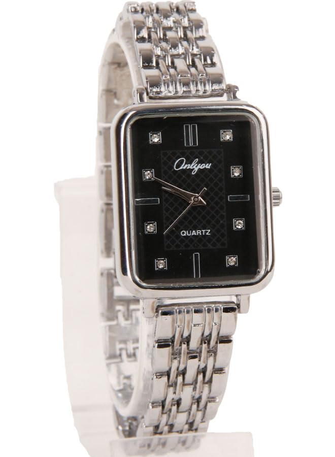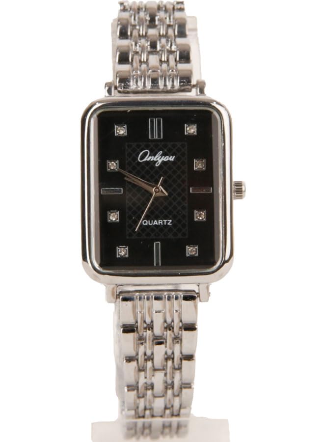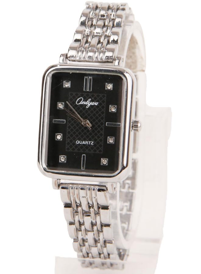 Generic - ساعة يد كلاسيك حريمي- انالوج - كوارتز- باند استانلس ستيل فضي - مينا سوداء - ONLY06