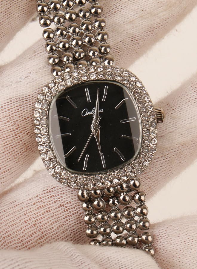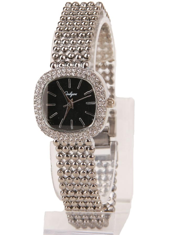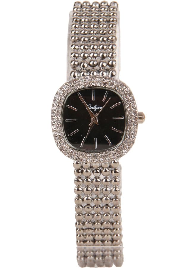 Generic - ساعة يد كلاسيك حريمي- انالوج - كوارتز- باند استانلس ستيل فضي - مينا سوداء - ONLY16
