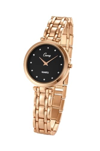 Generic - ساعة يد نسائية كلاسيكية، ذهبي وردي، إطار معدني مرصع بالكريستال، ميناء فضي، سوار معدني متشابك ٢٠ سم، مقاومة للماء، مناسبة للمناسبات اليومية والرسمية، موديل Gr-w001