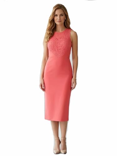 Generic - Women's Coral Lace-Bodice Midi Sheath Dress - Fitted Sleeveless Cocktail & Event Dress with Long Back Zipper - Size S (Small), Length 110cm (Thomas & Splendor)
