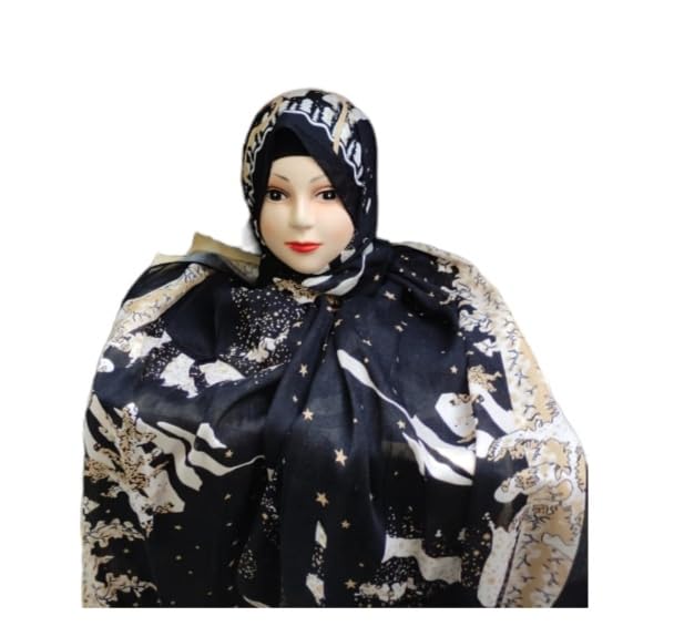 Generic - سكارف حجاب قطني للنساء، اسود مع طباعة بيضاء وذهبية، نمط سماوي، مزين بنجوم وجليتر