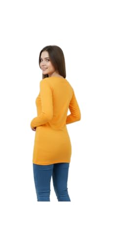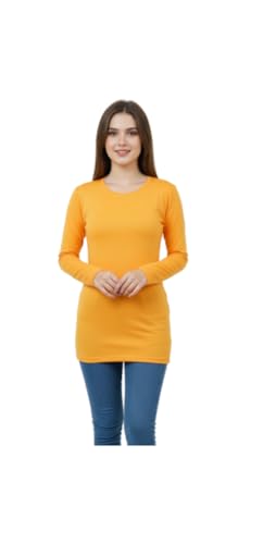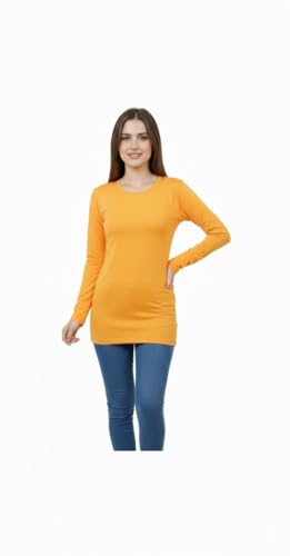 Generic - فانلة داخلية من قطن ليكرا بأكمام طويلة ورقبة دائرية من قماش ناعم قابل للتمدد، طبقة أساسية كاجوال أو للملابس الخارجية للنساء، طول 74 سم وعرض 80 سم ومقاس الذراع 40 سم
