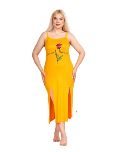 Project Z - ثوب نوم قطني للنساء، فستان اسود طويل مع طباعة ورد، فتحات جانبية، تصميم بدون اكمام