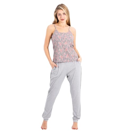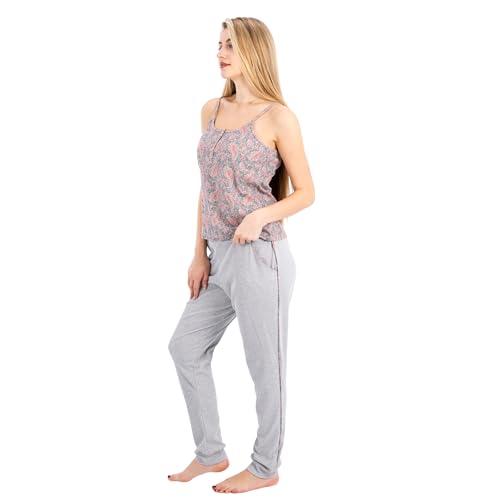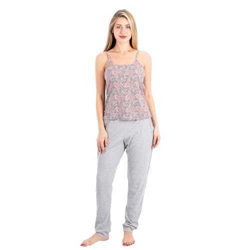 ZECOTEX - طقم بيجامة قطن للنساء | بلوزة مطبوعة بدون اكمام وسروال بقصة مريحة | ملابس نوم ناعمة وجيدة التهوية للمنزل والاسترخاء