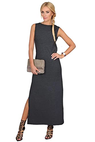 Generic - فستان نسائى قطن بفتحة من الضهر لون رصاصي غامق