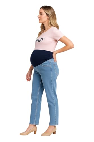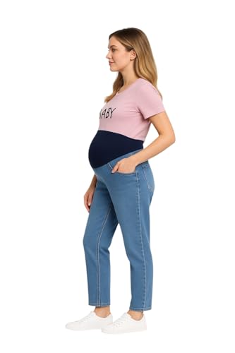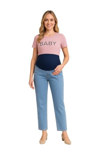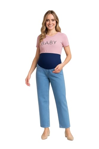 Generic - بنطلون الجينز للحوامل بأرجل مستقيمة خامة من قطن للنساء