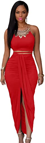 Generic - فستان نسائى قطن قطعتين توب وجيب لون احمر